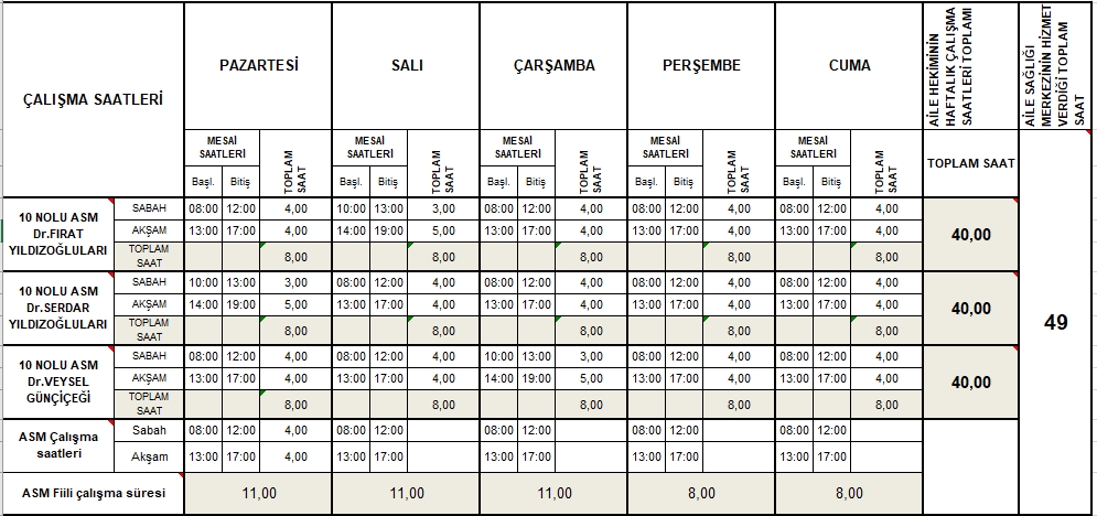Çalışma Saatlerimiz